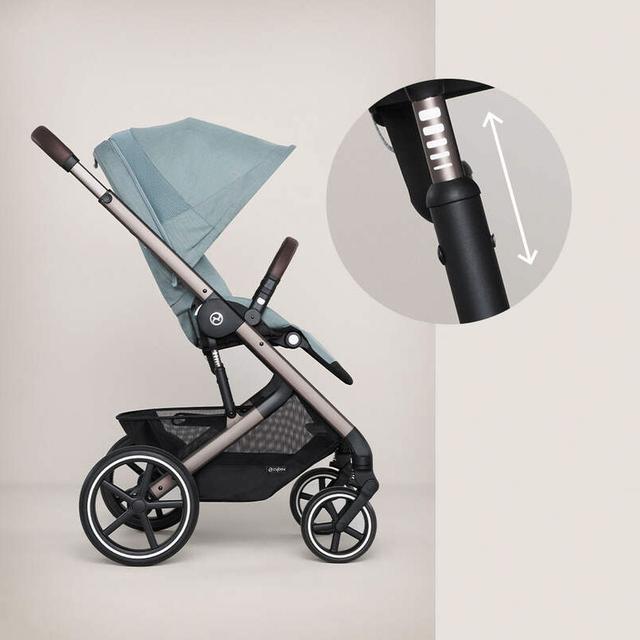 Шасі коляски завдяки сучасній підвісці згладжує всі нерівності дороги і має дуже плавний хід. Обертові колеса з можливістю блокування дозволять з комфортом проїхати як по міських дорогах, так і по піщаному пляжу. Телескопічна ручка, регулюється в 4 положеннях, підлаштовуючись під різний зріст батьків. У складеному стані коляска може стояти самостійно. Коляска Cybex Balios S Lux має просторий і доступний кошик для покупок, який при необхідності можна розкладатися. Ваші продукти з легкістю помістяться в кошику для покупок.