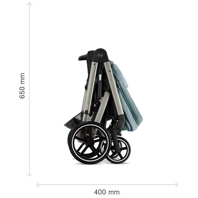 Шасі коляски Cybex Balios продумано до дрібниць. Легко і просто складається шасі разом з прогулянковим сидінням, тип складання - "книжка". Коляска в складеному вигляді стійко стоїть вертикально і займає дуже мало місця. Ви можете складену коляску розмістити у себе вдома в будь-якому місці.